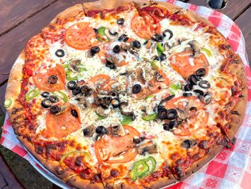 Pepperoni Sausage Bacon Anchovies Mushrooms Onions Olives Green Peppers Tomatoes